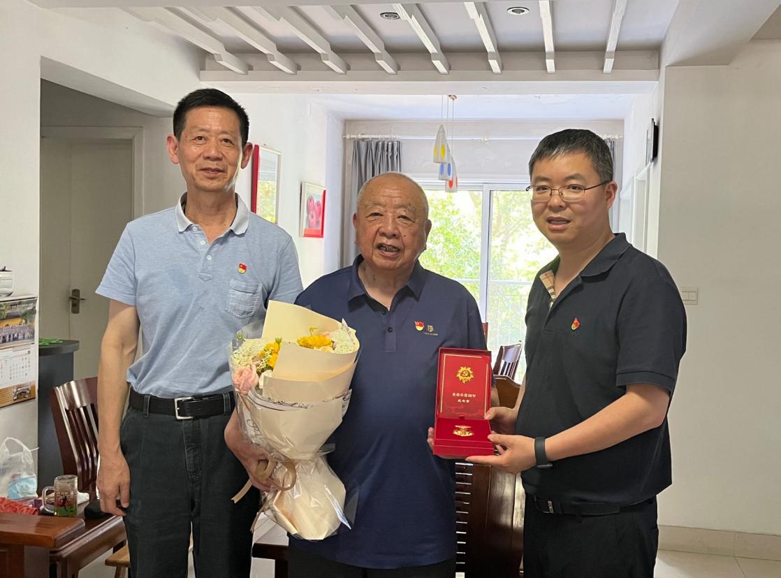 会前,肖甫青、左保齐一同来到吕再常老师家中,送上“光荣在党50年”纪念章,和老党员拉家常,仔细询问他的身体、生活以及家庭近况,倾听他的想法,送上学院党委的温暖与关怀。