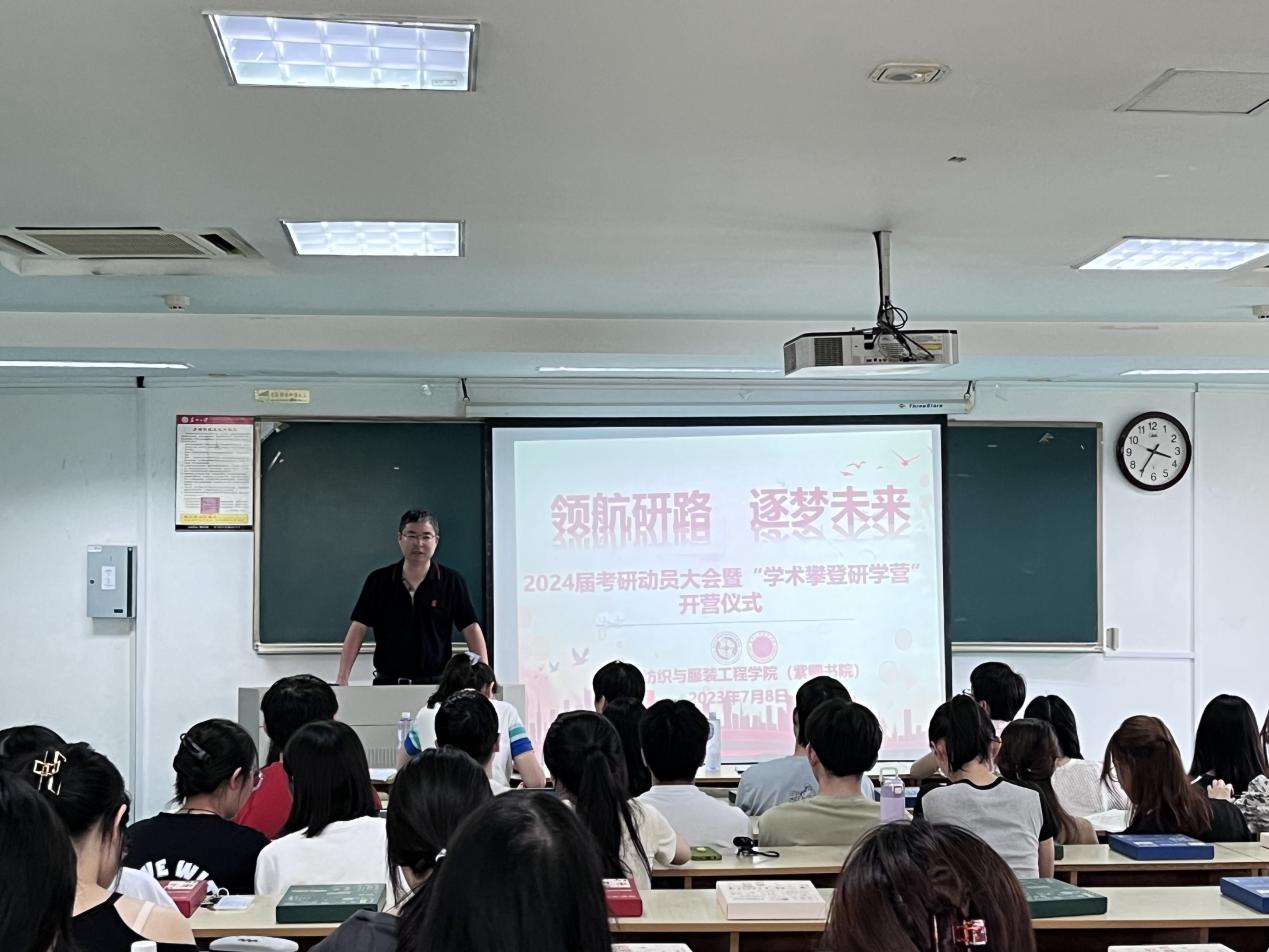 为深入开展学习贯彻习近平新时代中国特色社会主义思想主题教育,持续推进 “铸魂逐梦”工程,加强学风建设,7月8日下午P站 举办2024届考研动员大会暨“学术攀登研学营”开营仪式。学院党委书记肖甫青,院党委副书记、副院长虞岚,学生辅导员、2020级本科生、研究生导生代表参加了本次大会。活动由李磊主持。