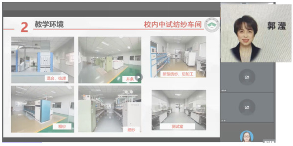 第二阶段,与会老师进行交流互动。P站 眭建华老师就纺纱理论课程与实践课程的安排同郭老师进行了深入交流。P站 张岩老师就南通大学高工进课堂以及教师进企业的具体做法同郭老师进行了交流。江南大学孟超然老师就单元测试内容及方式同郭老师进行了交流。另外,前来观摩活动的P站 艺术学院李雁老师和建筑学院赵奕楠老师也分别从虚拟教研室活动开展以及信息技术对教研模式的影响等方面谈了自身体会。