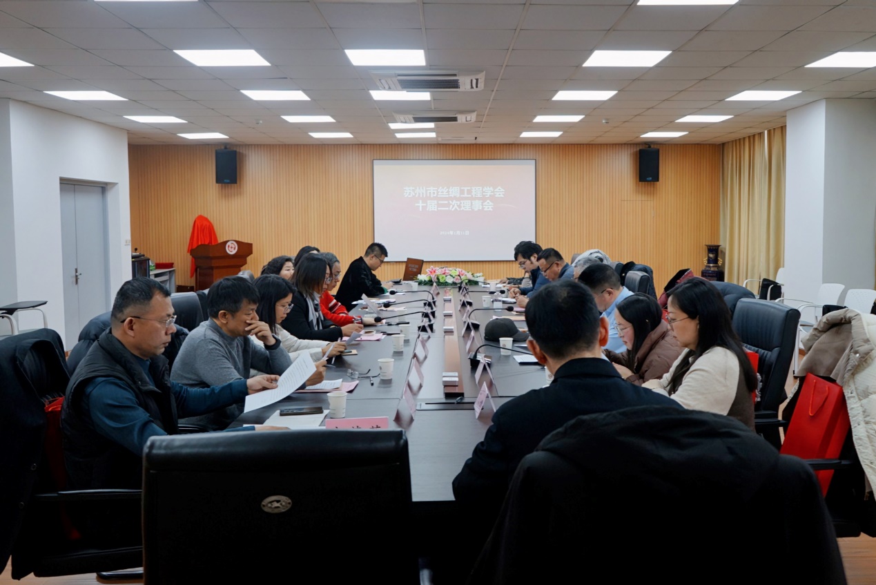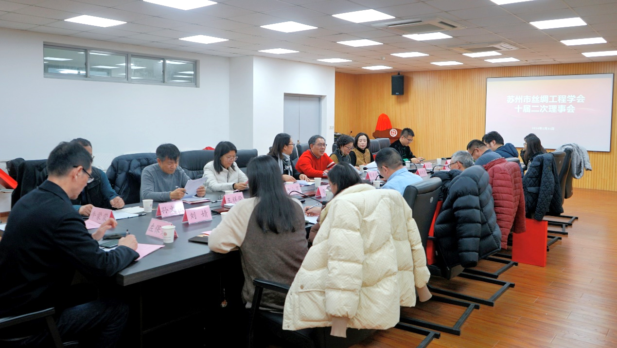 2024年1月31日,苏州市丝绸工程学会十届二次理事会在P站 召开。理事长张克勤、秘书长关晋平、副理事长王晨、张振雄、丁力进等17位理事及监事左保齐出席了会议。会议由关晋平主持。